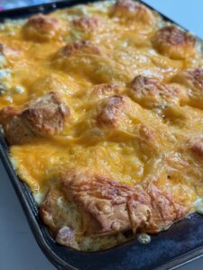 - Bake for 30-35 minutes until bubbling and biscuits are golden brown.
